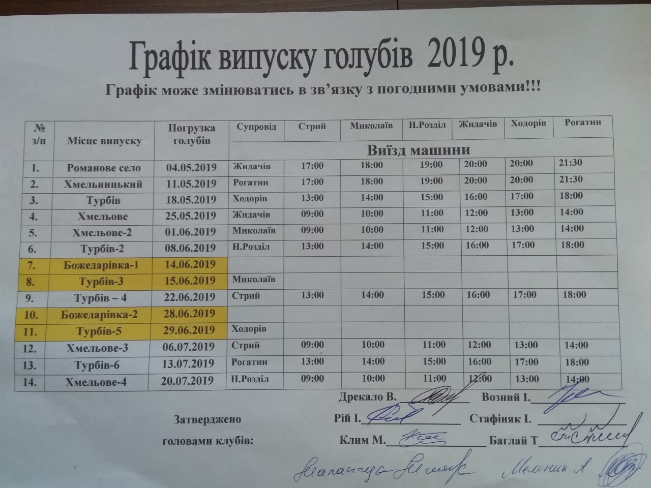 Графік випуску дорослих голубів сезон 2019 р. Графік випуску дорослих голубів сезон 2019 р. Ціна за одного голуба 35 грн. Голубівник: Івахів Мар'ян Добавлено: 4 Березня 2019