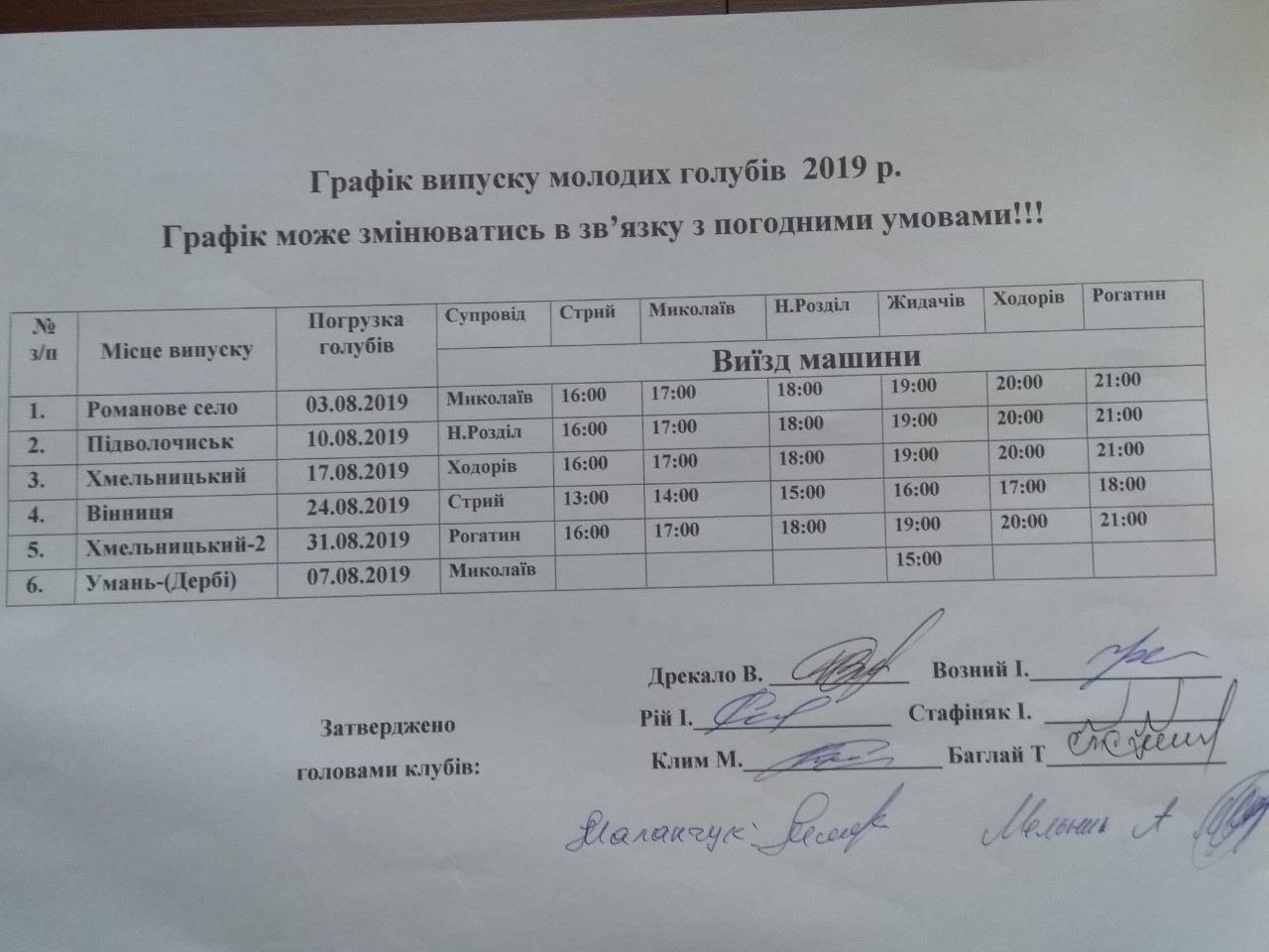 Графік випуску молодих голубів сезон 2019 р. Графік випуску молодих голубів сезон 2019 р. Голубівник: Івахів Мар'ян Добавлено: 4 Березня 2019