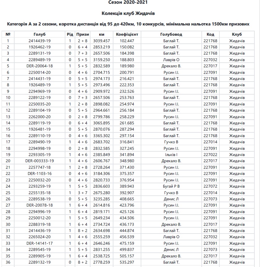Результати змагань 2020-2021 р.р.